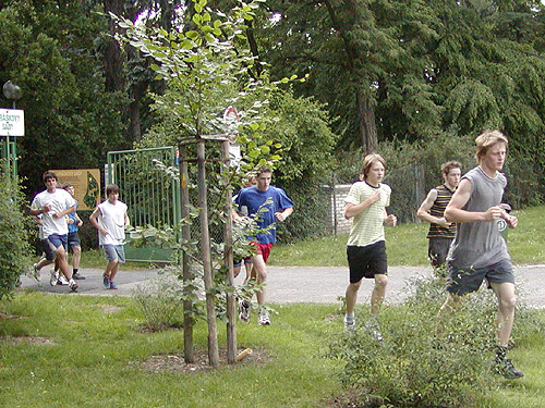 Krátké sprinty do kopce, na vrcholku Lukáš Daňo, Martin Koudelka a Jiří Kadlec