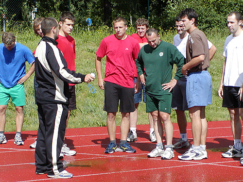 Martin Koudelka se protahuje a poslouchá pokyny trenéra Pazourka