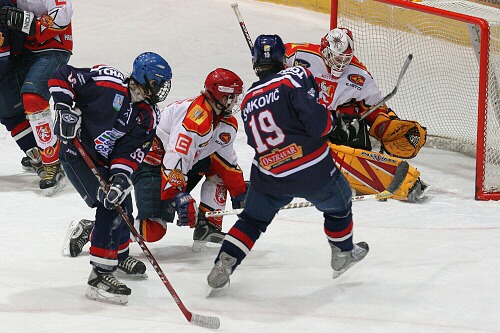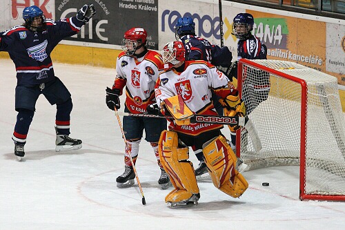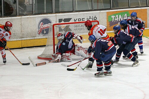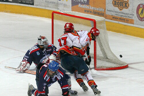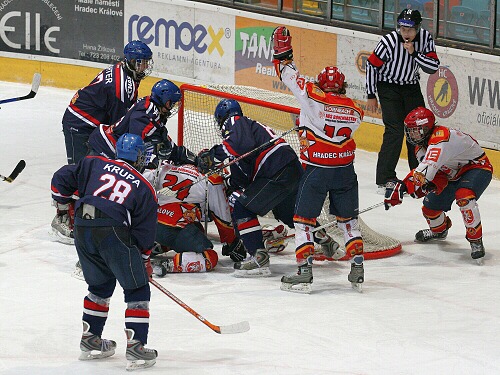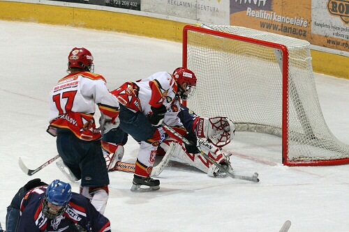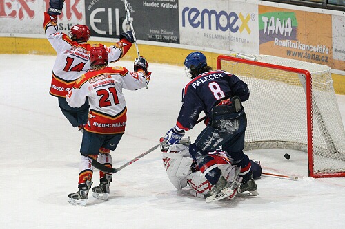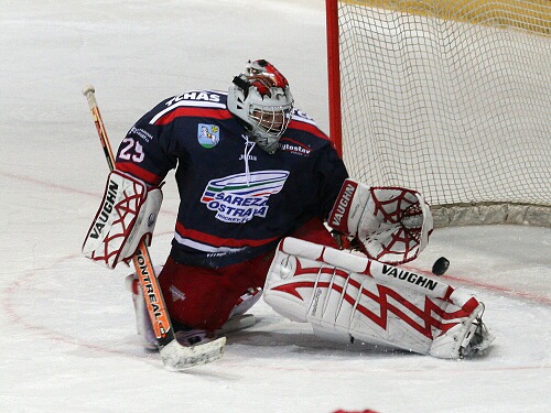 Brankář Sarezy likviduje jednu z 52 hradeckých střel