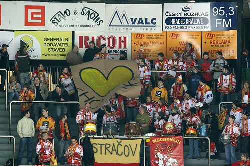 Hradecký fanoušek převzal ocenění za najetých více než 6600 km, které v průběhu sezóny procestoval, aby podpořil na venkovních zápasech hradecký tým