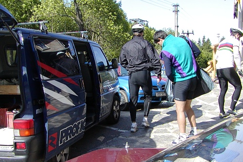 Richard Diviš a Petr Mocek se připravují na cyklistický výjezd