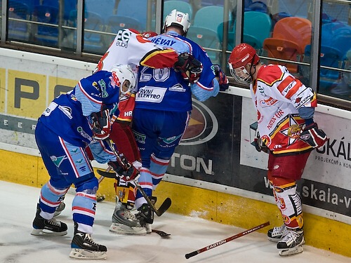 Jiří Kadlec obtěžovaný dvojící Jíra-Hlinka