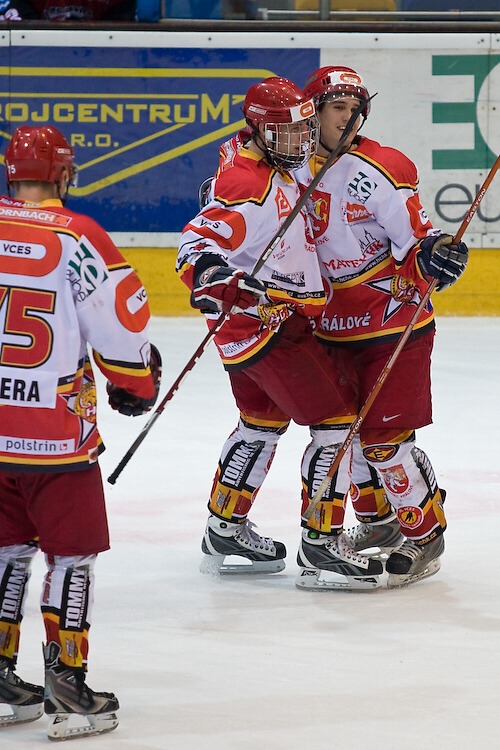 Sice je to těžké poznat, ale Patrik Flašar střílí svůj první hradecký gól.