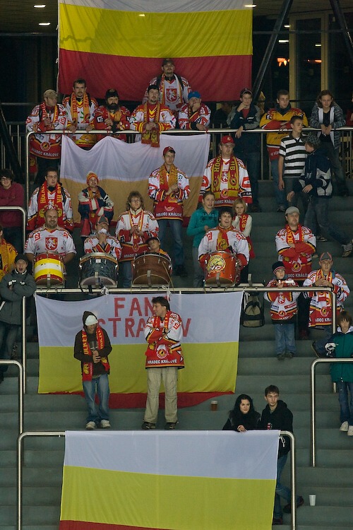 Milan Karlíček brání Filipa Semana před hradeckou brankou