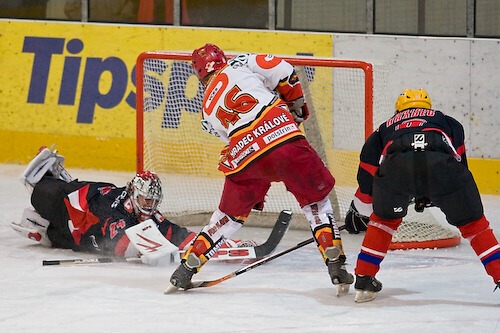 Nahození Jana Ježka si srazil hostující brankář za svá záda