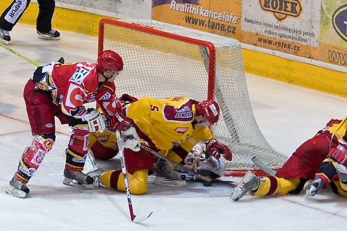 David Jonáš brání kapitána Jaroslava Roubíka