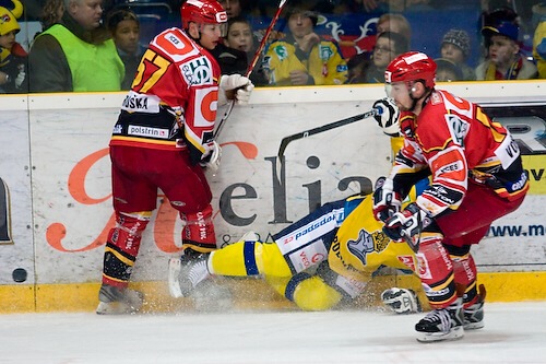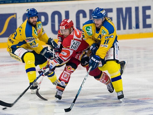 Daniel Volráb proskakuje mezi Kloboučkem a Mikulíkem