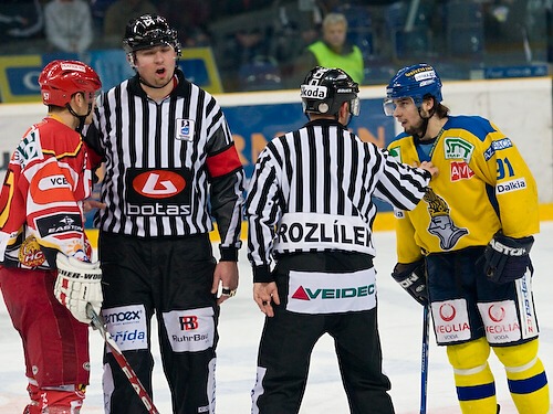Rozhodčí Jílek moralizuje Jana Hrušku a Jana Heřmana