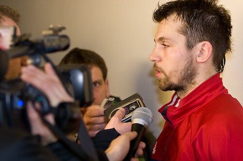 Tomáš Burian děkuje za výkon brankáři Koutskému