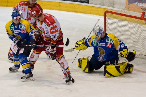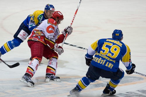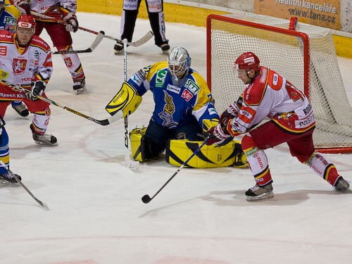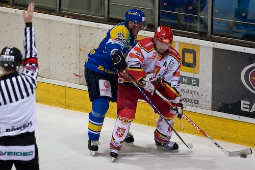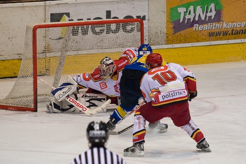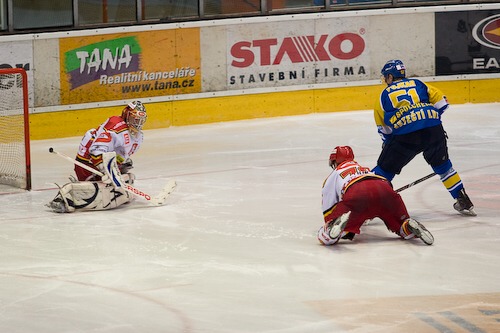Jiří Kadlec nedokázal dorazit kotouč za brankáře Severočechů