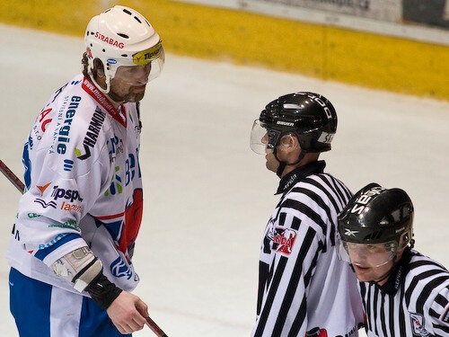 Rozčílený kapitán hostů Jaroslav Nedvěd