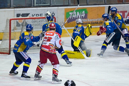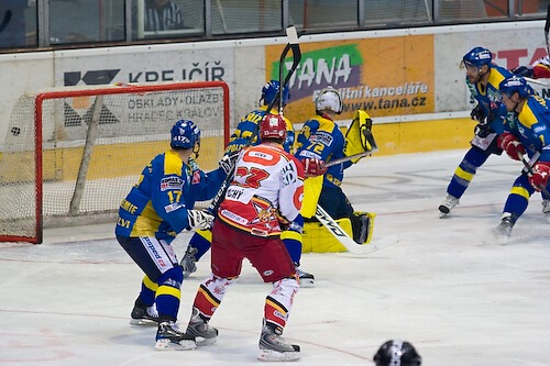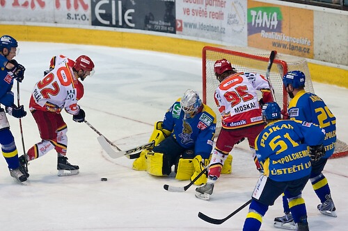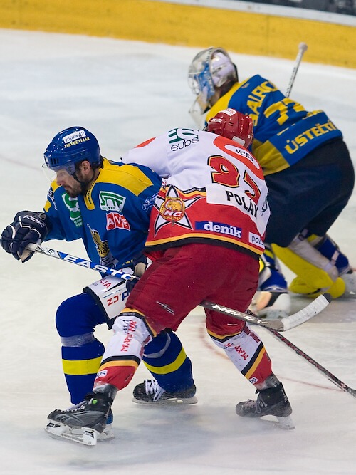 Jaroslav Polák doráží před Šindelářem