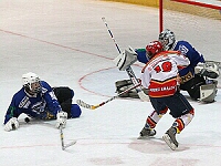 V první sérii samostatných nájezdů neproměnil Komínek, zatímco hradecký Aleš Půlpán si s Barusem poradil. Ve druhé sérii vyšel na prázdno jak hostující Heža, tak domácí Šafránek. Michal Březa ve třetí sérii musel dát, a také se tak stalo. Definitvní tečku za zápasem mohl udělat Šebek, ale blafák do forhendu mu nevyšel. Pokračovalo se tak čtvrtou sérií, kde si svůj pokus podruhé úspěšně zopakoval Aleš Půlpán. Tentokrát už byla jeho branka vítězná, neboť Kotrla vzápětí vychytal Jakub Toušku.