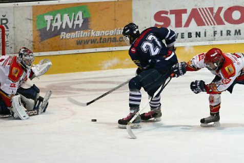 Šokující vývoj zápasu byl k vidění ve třetí třetině. Hned z kraje závěrečného dějství mohl skórovat Daniel Skalický, ale svoji šanci nezužitkoval. Chvíli po něm se propletl hradeckou defenzívou Roman Chlubna, ale ani on vedení Liberce nenavýšil. Se začátkem 47. minuty přišla ledová sprcha pro hosty. V čase 46:09 poslal David Šafránek kotouč před bránu, kde už číhal připravený Daniel Šebek, jenž umístil kotouč nad Jelínkův pravý beton. O 19 vteřin později bylo vyrovnáno. Jan Vlček našel Milana Valáška, který střelou po ledě z otočky překonal libereckého gólmana podruhé. Liberečtí byli pochopitelně vývojem zaskočeni. Není proto divu, že málem inkasovali při tvrdé střele Karlíka a teči Macháně, která orazítkovala horní tyč liberecké svatyně. S postupem času už i Hradec musel myslet na zadní vrátka. Přesto se Východočechům naskytla v závěru nevídaná šance na zisk třech bodů. V čase 55:59 vyloučil hlavní rozhodčí hned dva liberecké hráče najednou. To se pochopitelně střídačce hostů nelíbilo, ale sudí už své rozhodnutí nezměnil. Hradec však tuto příležitost trestuhodně zahodil a vypadalo to na prodloužení. To by ovšem v 59. minutě nesměl jeden z hostujících hráčů vyhodit kotouč do hlediště. To znamenalo pro Liberec další oslabení, které už Hradec dokázal s velkou dávkou štěstí využít. Střela Daniela Sobotky třikrát změnila směr, až se nakonec od Jana Vlčka odrazila za brankovou čáru.