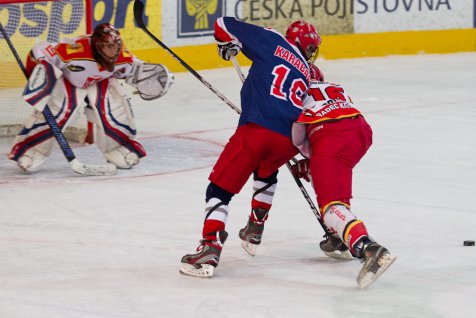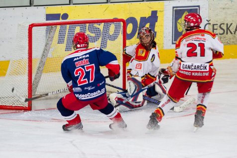 Než stihli zaskočení Hradečáci reagovat, Červený lovil ze své klece puk počtvrté. Karabáček proletěl kolem dvou protihráčů, načež naservíroval puk Tomáši Honetschlägerovi. Ten neodmítnul a bekhendem zvýšil už na 2:4. Ve zbytku zápasu nechyběla domácím aktivita, ale stejně jako v celém utkání ztroskotávali v útočné fázi na řadě nepřesností a stav už nedokázali změnit.