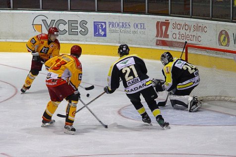 Poprvé v sezóně vyjeli hradečtí Energetici na led ve výrazně pozměněné sestavě, kámen na kameni nezůstal hlavně v první formaci Energetiků, odkud se kapitán Jaroslav Roubík přemístil do druhé pětky a Petr Přeučil po bok Domina a Volrába do té třetí. Hradec Králové se dostal v důležitém utkání do vedení ve druhé třetině zásluhou Jana Blanára, Kadaň ale záhy kontrolovala Postlem. Vedení na stranu hradeckých vrátil ještě do konce druhé třetiny Patrik Fořt a když stejný hráč zvyšoval ve třetí třetině na 3:1, měl Hradec nakročeno k vítězství. Cestu mu ještě zkomplikoval snížením Švejda, ale třetí gól už domácí nepřipustili a získali tak důležité tři body.