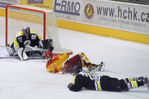 Dobrý start měli domácí i do závěrečného dějství, kdy využili další přečíslení. Martin Koudelka vybídl k druhé brance v utkání Patrika Fořta, který se v zakončení nemýlil a bylo to 3:1. Hra se i za tohoto stavu přelévala ze strany na stranu a ještě větší náboj jí dal ve 49. minutě Jiří Švejda, jenž ze sólového nájezdu snížil na 3:2. Ve zbylých deseti minutách třetí třetiny diváci viděli hned několik přesilových her na obou stranách, branka v nich ale nepadla a tak hradečtí zvítězili ve velmi důležitém utkání v boji o příčky play-off s Kadaní 3:2 a drží stále s pomyslnou osmičkou velmi reálný kontakt.