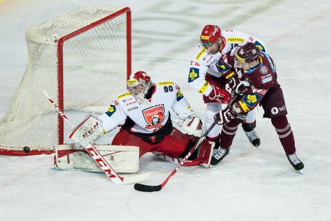 Taktéž na začátku druhé části byl Ondřej Kacetl v obrovské permanenci, všem pokusům domácích ale odolal, a tak se Hradec mohl vydat na zteč. Radost z gólu na 1:1 Jaroslava Kudrny v 25. minutě hradeckým příznivcům nicméně moc dlouho nevydržela. Přesně o jednašedesát vteřin později nahodil Juraj Mikuš puk od modré čáry, a ten, skryt mezi dvojičkami hráčů před brankovištěm, zapadl za Kacetlova záda – 2:1.