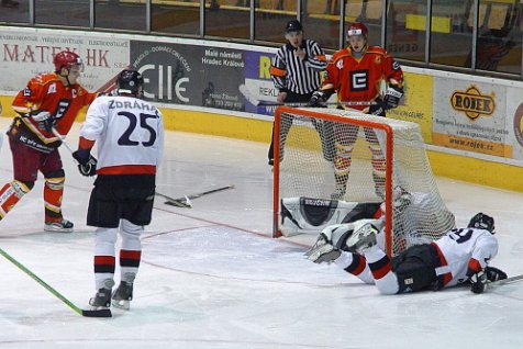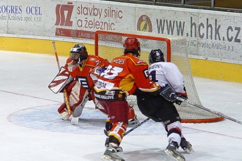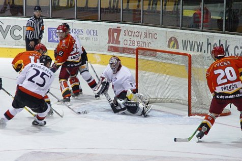 Havířov přijel do Hradce Králové zvítězit a zajistit si tak čtvrté místo, které by mu umožňovalo začít play-off na domácím ledě. Vše tomu také nasvědčovalo, Panteři vedli v polovině utkání po gólech Kováře, Mikšana a Hrušky dokonce 3:0, ale pak Hradečtí dokázali zápas zcela zvrátit a třemi góly v poslední třetině nakonec vyhrát 4:3. Vítězný gól zaznamenal Jan Blanár, dvakrát do černého se trefil kapitán Roubík a jednou obránce Hendrich. Soupeřem hradeckých hokejistů v play-off bude po výhře v Ml. Boleslavi Dukla Jihlava, ostatní dvojice jsou Ústí n/L – Olomouc, Brno – Havířov a Ml. Boleslav – Chomutov.