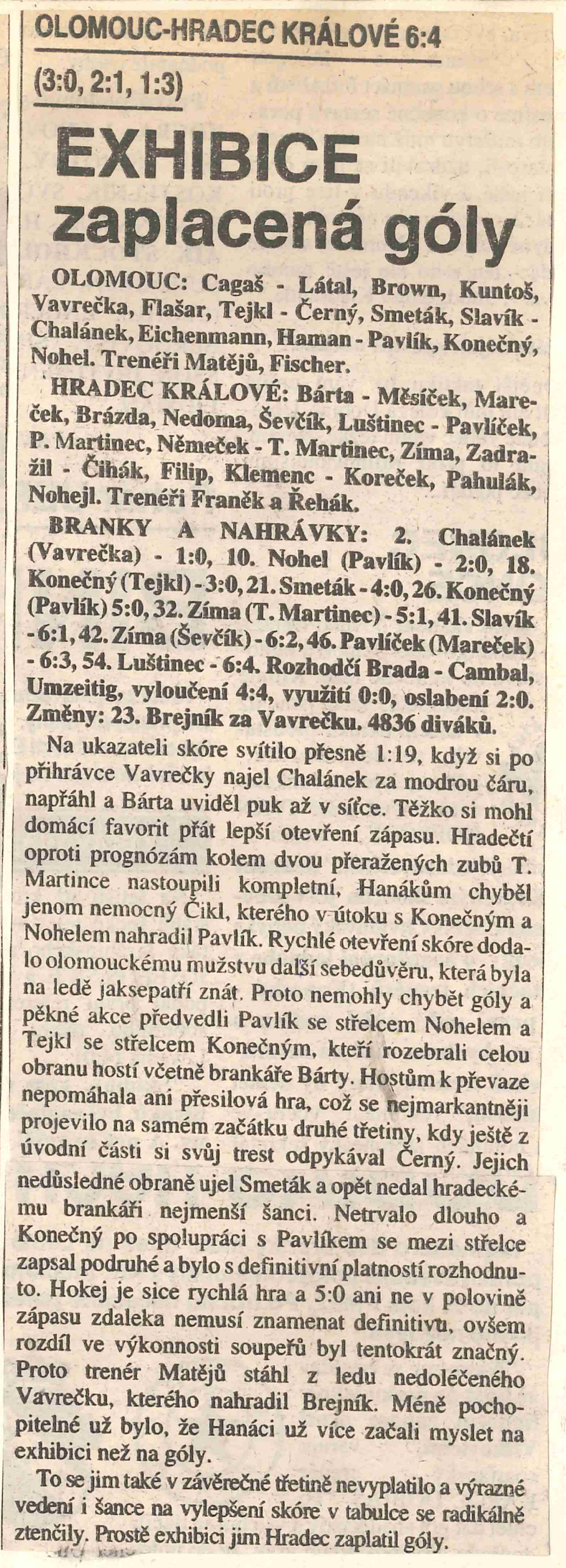 Zápas HC Olomouc - HC Stadion Hr. Králové