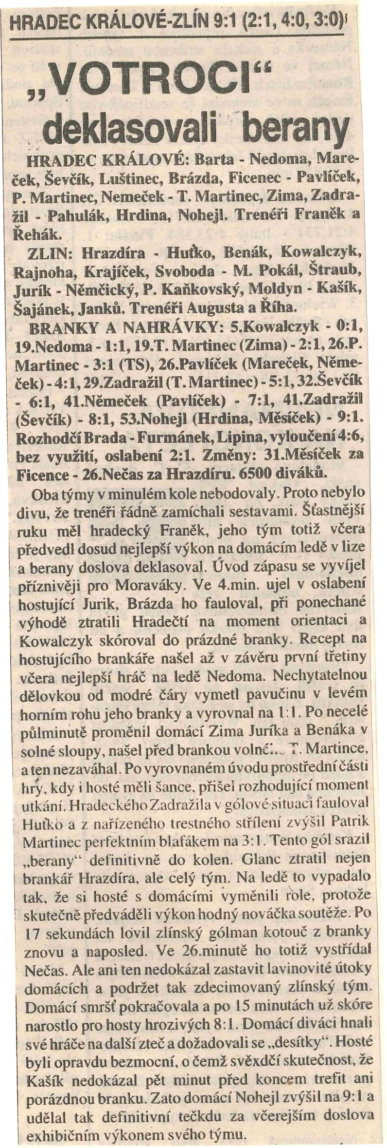 Zápas HC Stadion Hr. Králové - AC ZPS Zlín