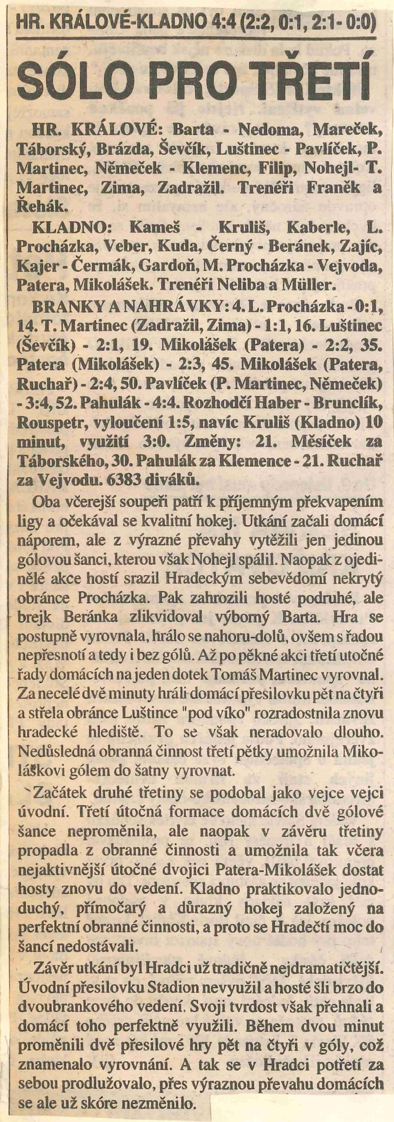 Zápas HC Stadion Hr. Králové - HC Kladno