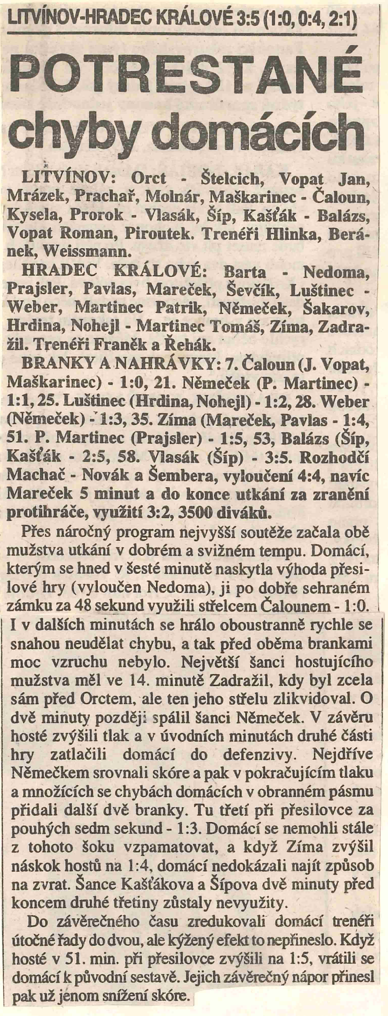 Zápas HC Chemop. Litvínov - HC Stadion Hr. Králové