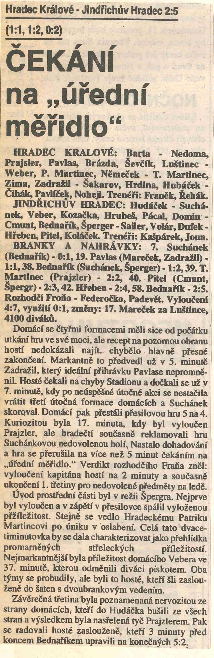Zápas HC Stadion Hr. Králové - HC Vajgar Jind. Hradec