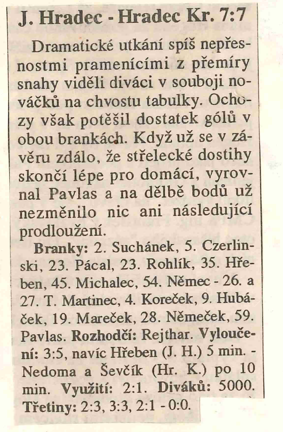 Zápas HC Vajgar Jind. Hradec - HC Stadion Hr. Králové