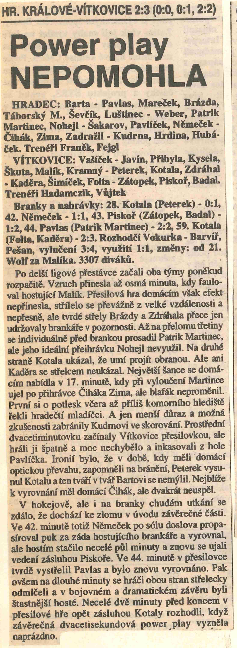 Zápas HC Stadion Hr. Králové - HC Vítkovice