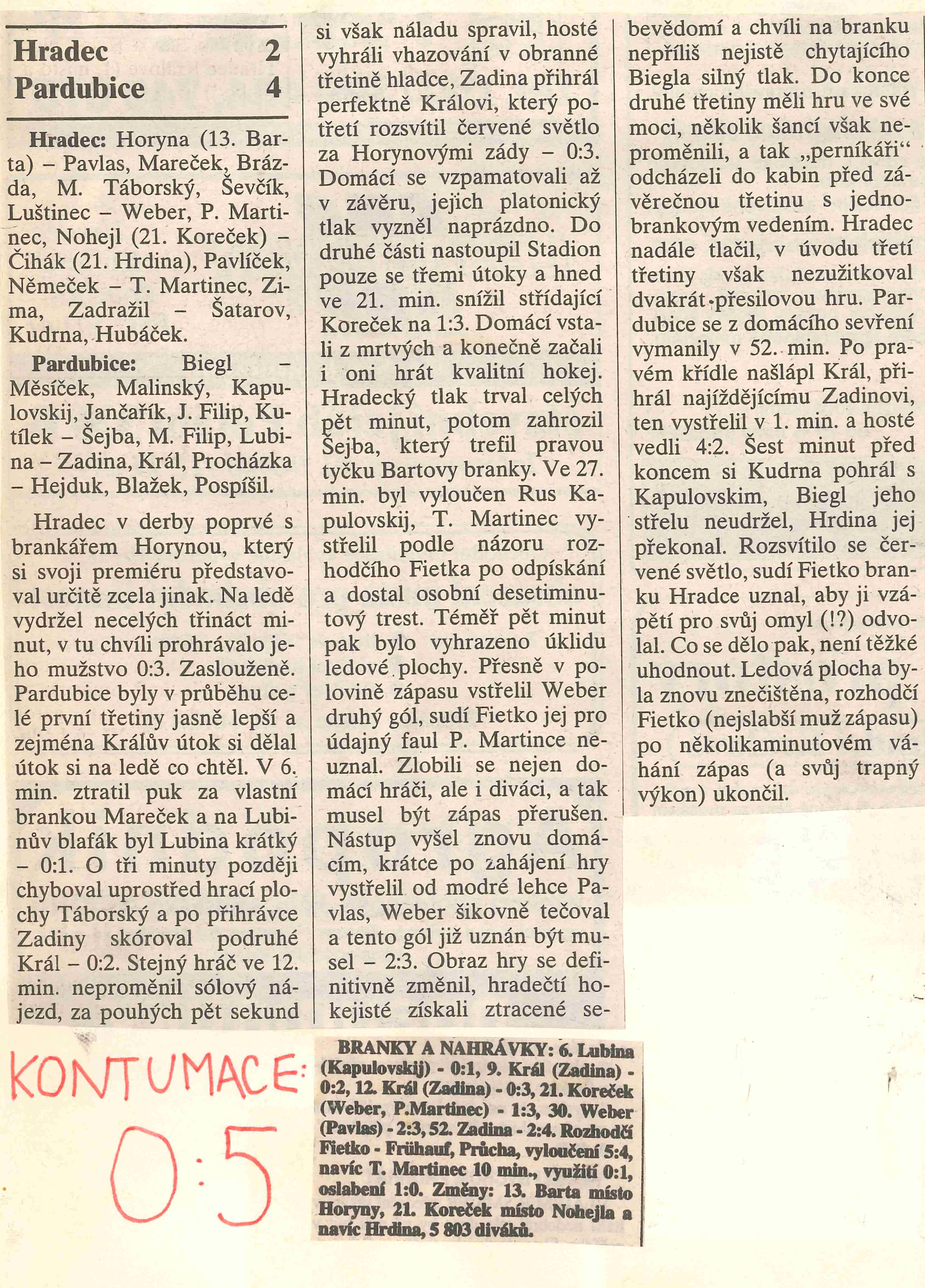 Zápas HC Stadion Hr. Králové - HC Pardubice