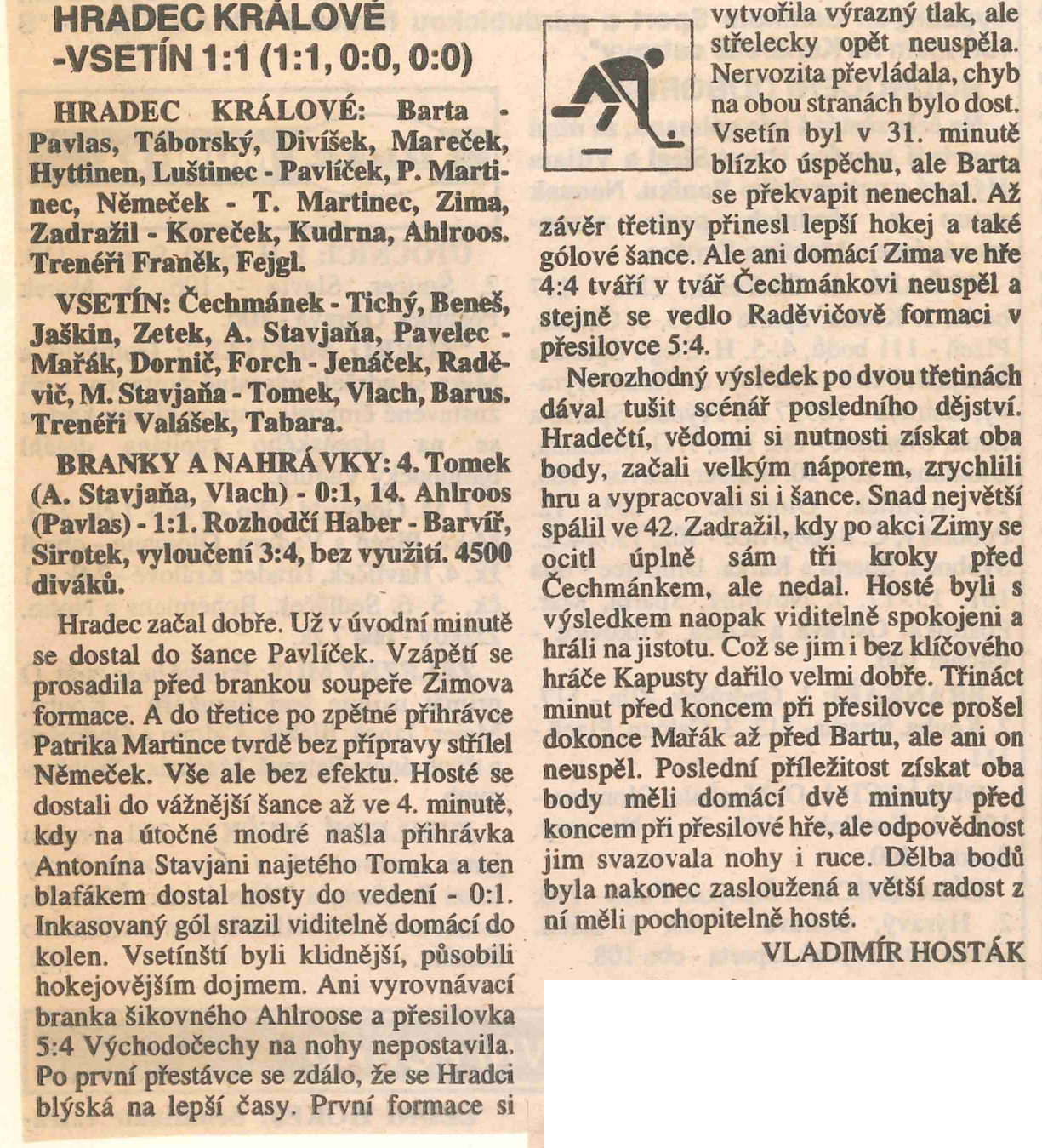 Zápas HC Stadion Hr. Králové - Zbrojovka Vsetín