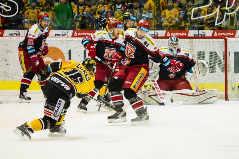 Východočeši mají pomyslný mečbol! Velký sen o postupu mezi nejlepší čtyři týmy Tipsport extraligy začíná nabírat reálných rozměrů, ale pořád není dokonáno. Hradec dokázal na soupeřově ledě vyhrát v obou duelech, v tom druhém k tomu vedla poctivá obrana a potrestání chyb soupeře. Svého protivníka mohou Hradečtí dorazit a oslavit postup v úterním pátém duelu – tak všichni hurá do FORTUNA arény!