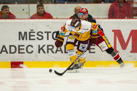 V 56. minutě ještě vykřesal jiskřičku hostující naděje Matěj Stříteský. Ten napřáhl kousek za modrou čárou a podruhé v zápase překonal jinak výborně chytajícího Jaroslava Pavelku – 4:2. Hradec však dal najevo, že výhru si už vzít nenechá. Rudolf Červený dorazil do odkryté části brány střelu Andrise Džerinše a stav 5:2 vydržel na kostce až do závěrečné sirény. Do nedělního derby s Pardubicemi tak půjdou Východočeši na vítězné vlně!