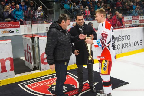 Výborný výkon a zasloužené body. Tak by se dal shrnout úterní duel s Kladnem, které přijelo i s hvězdným Jaromírem Jágrem v sestavě. Mountfield byl od počátku aktivnější a nebezpečnější, což se promítlo i v celkovém skóre. Postupně se prosadili Cingel, Klíma, Lev a mladý Gaspar, který po zranění Jordanna Perreta zaskakoval coby bek v jinak juniorském útoku společně s Poppelem a Morongem. Jedinou kaňkou zápasu bylo to, že Marek Mazanec přišel o čisté konto 13 vteřin před koncem.