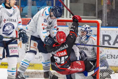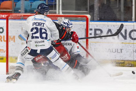 Vidle jemu i celému vítkovickému celku však hodil do snahy kapitán na druhé straně – Martin Pláněk, jenž v sedmé minutě třetí třetiny napřáhl na modré čáře a trefil přesně horní růžek Hrachovinovy branky. Hradečtí po třetím zásahu umocňovali aktivitu a ve 49. minutě už to bylo o čtyři branky. Příhodný odraz puku od mantinelu našel nejlépe Aleš Jergl, který se osamocený před Hrachovinou nemýlil. Jergl navíc svým gólem číslo 92 v hradeckém dresu vyrovnal klubový rekord v počtu branek Radka Smoleňáka. V poslední desetiminutovce utkání pak patřila pozornost případné deváté nule v sezoně pro Stanislava Škorvánka. Hradecký brankář si ji ale ještě musel zasloužit, když to z dobrých pozic zkoušeli Jindřich Abdul nebo Joe Leahy. Nakonec se však povedlo a Mountfield si připsal důležité vítězství 4:0 a jeho slovenský gólman vyrovnal slovenský rekord v počtu vychytaných nul v jedné sezoně Tipsport extraligy, který držel Igor Murín. Další utkání čeká Lvy v pátek od 18:00 na olomouckém ledě.