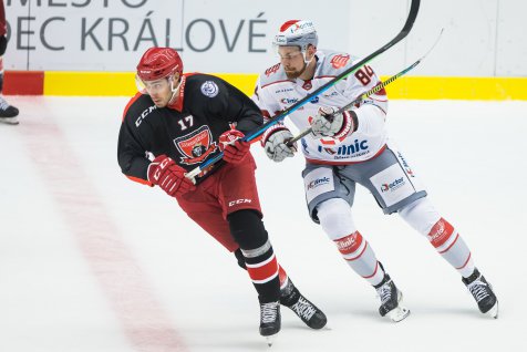 Hradečtí trenéři do souboje se slovenským soupeřem poslali kombinovanou sestavu zkušených borců a nadějných mladíků. V první formaci začínal třeba odchovanec Petr Poppel po boku Kevina Klímy a Lukáše Cingela. V brance dostal příležitost Henri Kiviaho.