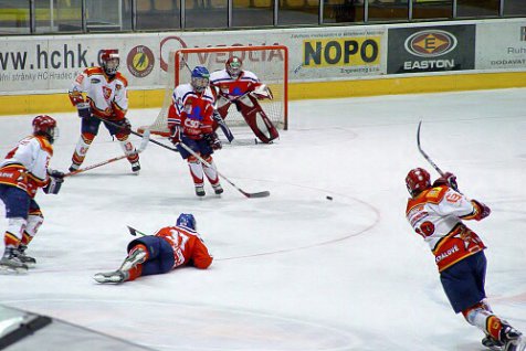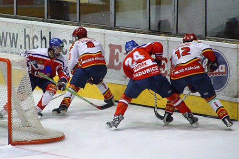 39. extraligové kolo mělo na programu také východočeské derby mezi Hradcem Králové a Pardubicemi. Zatímco z předchozího setkání vyšli vítězně Hradečtí, když si z Pardubic odvezli tři body za výhru 3:2, tentokrát bylo vše opačně. Pardubičtí se dostali do vedení již v 10. minutě a Hradci dovolili mximálně vyrovnat. O první branku domácích se zasloužil Michael Boček. Pardubičtí následně přidali tři branky, díky kterým se dostali do vedení 4:1. Před druhou přestávkou ještě stačil snížit na rozdíl dvou branek Aleš Půlpán, ale hosté si již vítězství ve třetí třetině pohlídali. Nic na tom nezměnila ani druhá branka Michaela Bočka. Důležitá je však hlavně vysoká prohra PZ Kladna s Plzní 10:0, díky níž je definitivně rozhodnuto o tom, že právě kladenský tým sestupuje. Hradečtí dorostenci tak splnili cíl letošní sezóny a udrželi extraligu!