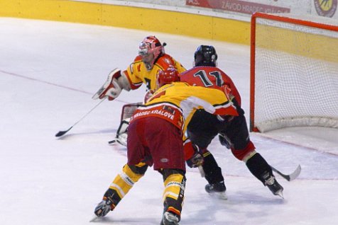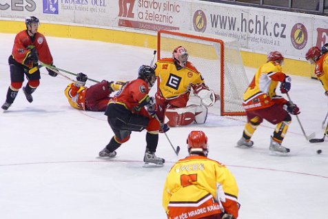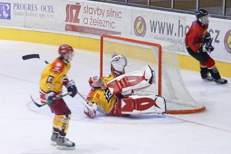 Juniorům se již tradičně nevydařil začátek utkání a hned v první minutě o jednu branku prohrávali. V závěru první třetiny zakončil krásnou kombinaci domácích Jiří Šimoníček a ve druhé dvacetiminutovce snížil na 2:3 neméně hezkým gólem Martin Hloušek. Hradec měl až do sirény převahu nad svým soupeřem, jenže ve třetí třetině to bylo právě naopak. Hosté neměli příliš mnoho střel, ale dokázali využít každou větší šanci, což znamenalo další tři góly v síti Východočechů a konečné vítězství Karlových Varů 6:2.
