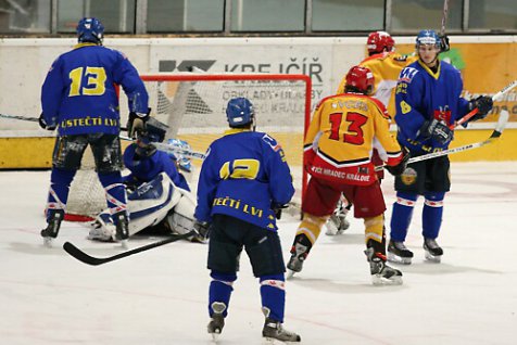 Ve druhé části neměli domácí důvod se zbytečně hnát do útoku a k vidění tudíž nebylo tolik brankových příležitostí. Slovanu ke korekci stavu nepomohly ani přesilové hry, jelikož střely postrádaly buď přesnost, nebo hradečtí obránci pokryli dorážející soupeře. Do hry se tak začaly vkrádat spíše nepřesnosti v rozehrávce, než pohledné hokejové momenty. Hostující lavičce začaly pochodovat nervy, což vyústilo v několik slovních přestřelek s hlavním rozhodčím. Pro Hradec z toho rezultovala dvouminutová přesilovka 5 na 3, kterou následně sudí vykompenzoval alespoň na 4 na 3. Spíše než hokej v těchto fázích byla k vidění rozháraná hra z obou stran. Početní výhodu nakonec domácí využili. Hiadlovského překonal pěknou kličkou Petr Ropický - 4:0. Seznam vyloučených se utěšeně rozrůstal a pro Ústí z toho rezultovala krátká přesilovka 5 na 3. V té přišel první zásah Ústeckých Lvů, když Brože prostřelil Robin Hanzl - 4:1. Od čtvrté hradecké branky uplynulo pouhých 28 vteřin. Poslední slovo ale měli ještě do přestávky domácí. Ondřej Březina podnikl rychlý výpad po pravém křídle a tvrdou ranou trefil přesně k protější tyči – 5:1. Vášně na obou stranách se do druhé sirény naštěstí uklidnily.
