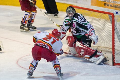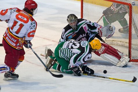 Na začátku třetího dějství si hosté začali dělat naděje na korigování stavu, ale domácí je k ničemu nepustili. Na druhou stranu, všechny střely Hradeckých mířily jen do hrudi gólmana Kabyla, či mimo jeho tři tyče. Všechno jinak mohlo být v přesilovce domácích, kdy uprchli dva Příbramští, jenže Martin Klement dokázal za záchrannou brzdu zatáhnout dřív, než by se muselo pískat trestné střílení. V 56. minutě dokonce trefil Filip Černý tyč, což nejspíše předznamenalo situaci v minutě příští. V přesilovce nahazoval od modré Michael Karnoš a jeho střelu umně tečoval Jiří Loskot a Tomáš Alexa neměl šanci zareagovat. I přes pár momentů plných vzruchu, jako například dvojnásobné vyloučení Hradeckých minutu před koncem, se rozhodnutý zápas ve třetí třetině podobal spíše veřejnému bruslení. Nakonec se opakoval výsledek z prvního vzájemného zápasu a Hradec vyhrál 8:1.