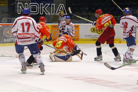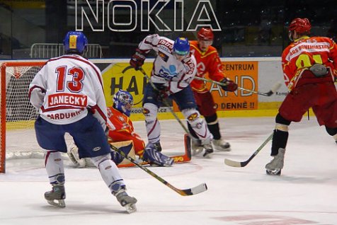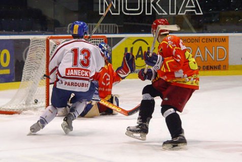 V tu dobu totiž rozhodčí trochu přísně poslal Hradecké do tří. Velké gólové příležitosti se domácí nezalekli a zásluhou kapitána Petra Chaloupky otevřeli skóre utkání. Hradečtí dostali o pár minut později úplně stejnou příležitost a poradili si s ní bravůrně. Karel Marša si vyměnil puk s Jakubem Plíhalem a křižnou přihrávkou našel Jana Šejnohu. Ten bleskově kotouč poslal na druhou tyč Ladislavu Lučanovi, jenž neměl se střelou do prázdné klece žádné potíže. Vzápětí ale vrátil Pardubicím vedení David Salava a těsně před kocem třetiny navíc skóroval Otakar Janecký.