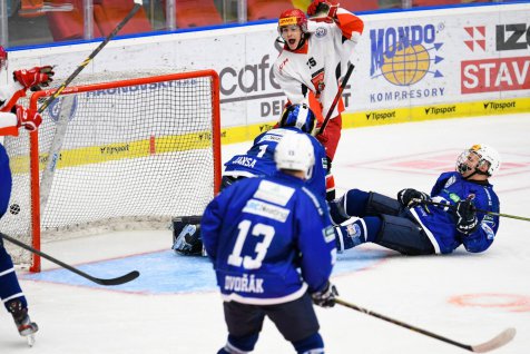 Juniorka se podobně jako proti Motoru dostala vlastními chybami pod tlak a nechala soupeře odskočit do vedení 2:0. Tentokrát góly dokonce přišly dříve. Již v páté minutě se kolem brány šikovně obtočil Adam Dvořák a zasunul za přesouvajícího se Vojtěcha Mrázka – 0:1. O tři minutky později se domácím dýchalo ještě hůře, když v oslabení hned po buly nepohlídali Jakuba Šilera, který měl před sebou volný prostor a z vrcholu kruhu trefil do dolního rohu klece – 0:2. „Není dobré takhle začít, je pak těžké se do toho vracet. Ale jsem strašně rád, že jsme to dokázali a srovnali na 2:2. Pak jsme si nechali dát ještě na 2:3, což byla škoda. Kdyby se to nestalo, mohli jsme jít do druhé části klidnější,“ popisuje Štěpán Černý.