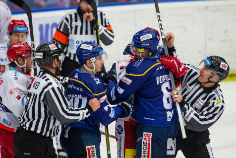 Sestavu Mountfieldu čekaly po poslední prohře v Liberci a volnu navíc dvě změny. Mezi tři tyče se vrátil Patrik Bartošák na úkor Henriho Kiviaha. A přesuny nastaly i v útoku – Giorgio Estephan naskočil ve třetí lajně a místo Matěje Chalupy se divákům ukázal David Šťastný.