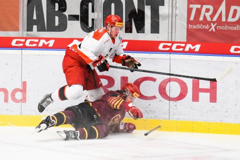 Ani do druhé třetiny nevstoupili Hradečtí příliš šťastně, první oslabení duelu po vyloučení Moravce ale dokázali odbránit. Opticky měla navrch Dukla, která velkou část utkání strávila na útočné polovině a v polovině 28. minuty už mohla odskočit na tři branky, Číhalův odvážný průnik zakončený z mezikruží ale prosvištěl jenom nad břevno.