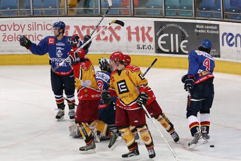 V poslední dvacetiminutovce vrhli hosté všechny síly do útoku, ale střely Szturce i Hartmanna Brož kontroloval a neujal se ani pokus Bartoše zpoza branky. Rostoucí tlak Vítkovic nakonec přeci své ovoce přinesl. Ve 48. minutě se přes hradeckou obranu přehnal Tomáš Bursík a neomylně zavěsil. Kritická minuta pro Hradec však pokračovala. Za dalších 30 vteřin zužitkoval další vpád do útočného pásma Tomáš Sedmihubský střelou mezi Brožovy betony a ze zápasu se stalo drama. Trenéři Hradce reagovali oddechovým časem, ale nápor Vítkovic v těch chvílích gradoval. V další velké šanci Bartoš mířil vedle. Hráči Hradce se v této pasáži utkání dostávali do útočného pásma soupeře jen sporadicky, převážně se jen bránili tlaku soupeře. Ideální příležitost k vyrovnání nabídli Vítkovicím domácí sami, když dva hráči po sobě vyhodili puk ze hřiště a rezultovala z toho přesilovka Vítkovic v délce 62 vteřin. Ovšem ani ta ke kýženému vyrovnání nevedla. Tak hostující trenéři sáhli k poslední variantě, když odvolali Taťáka z branky a zkoušeli to v šesti proti pěti. Obětavá obrana Hradce však odolala a do úniku se dostali Berger a Ondřej Březina a druhý jmenovaný dopravil puk do opuštěné klece, čímž si připsal svojí čtvrtou branku v zápase a zpečetil tak stav na konečných 5:3 pro Hradec.