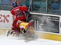 Třetí třetina začala heslem nedáš-dostaneš. Salava švihem trefil tyč a na druhé straně nenápadnou střelou snížil Jaroslav Kopáč. Obrovskou šanci spálil Hradec ve 44. minutě. Šimoníček s Rozlivkou se řítili sami na brankáře Sarezy, ale díky nepřesné přihrávce neměl Gleich problém. Další závar ostravských opětoval Ropický tvrdou střelou z pravé strany. V čase 46:34 unikal znovu ostravským zadákům aktivní Březina a Parma jej surovým zákrokem kolenem poslal se zraněním k ledu a na světě byl další trest ve hře. Dlouhou přesilovku si tak zkusil i Hradec, ale nikam se v ní hráči domácích nehnali. Naopak v oslabení zkoušel Brožovu pozornost Belanec. V další přesilovce Kotrčovu ránu zblokovala obrana Ostravy a k další brance Hradce nevedly ani dvě krátké přesilovky 5 na 3. A když další Kotrčovu ránu našel Gleich v lapačce, měla poslední slovo v zápase Sareza. V 58. minutě vrátil v přesilovce hostí odraženou střelu bekhendem do sítě Radovan Vajda a upravil tak skóre zápasu na konečných 4:2.